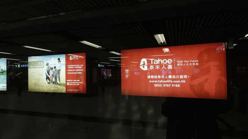 The advertisements dominate both Hong Kong Island and Kowloon entrances, showcasing the comprehensive product range of Tahoe Life in a remarkable way.